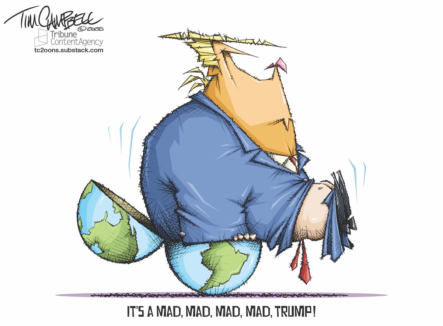 Sometimes the imagery for a cartoon comes first and that’s what happened here. Trump has been demanding help from nations that he’s been defecating on for over a year and I needed to draw that. My first sketches were of Trump sitting on his global toilet and I imagined him with his phone and considered having him typing something along the lines of “Why won’t these other countries help me?”