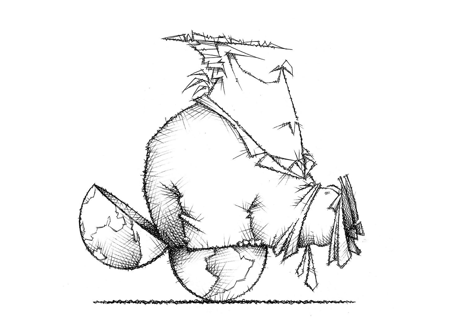 I then wondered about just having the image without any copy at all. I’m sure that most of my readers would have enjoyed that, but I wasn’t totally convinced that it was the better choice. I showed one of the initial sketches to me best friend and he suggested that I add his pants around his ankles for more visual clarity. The addition of the pants lead me to losing the phone and stretching his chubby legs forward in the same manner as Jeff Daniels in his legendary scene from Dumb & Dumber.